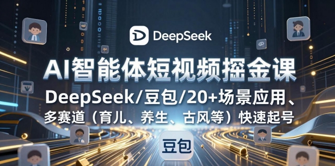 本课程是一套实战导向的AI智能体应用与视频创作变现系统课程。课程以“通用智能体”为核心工具,详细教授如何利用DeepSeek与豆包等平台,创建并应用超过20种垂直场景的智能体(如儿童